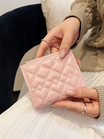 Estudante novo estilo portátil acolchoado estilo curto PU couro bolsa de moedas e titular do cartão feminino